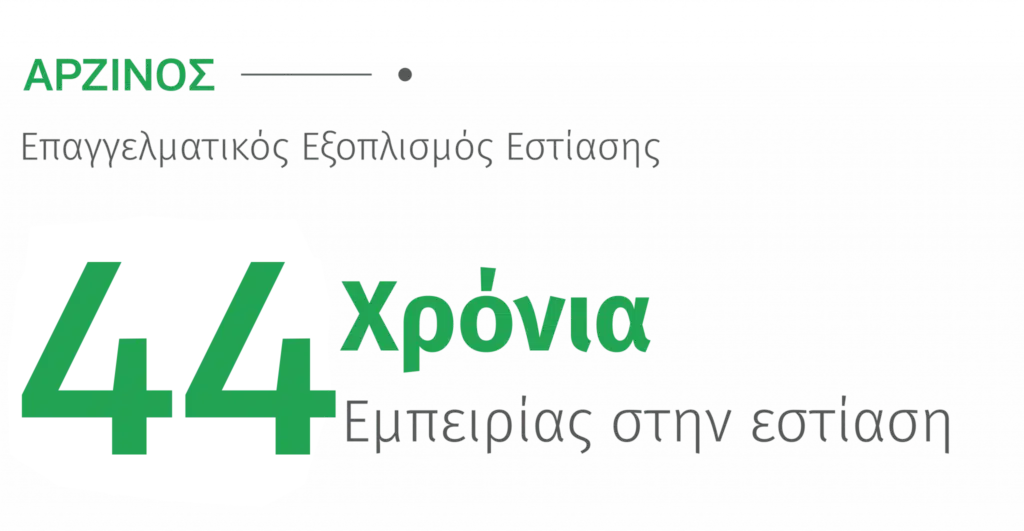 Η ΑΡΖΙΝΟΣ Ν. Α.Ε. συνεργάζεται με αναγνωρισμένα εργοστάσια της παγκόσμιας αγοράς, για να σας προσφέρει ποιοτικά αλλά και καινοτόμα μηχανήματα εστίασης. Παρακολουθούμε διαρκώς τα παγκόσμια trends της αγοράς, επιλέγοντας την κατάλληλη λύση ανάλογα με κάθε χώρο εστίασης.